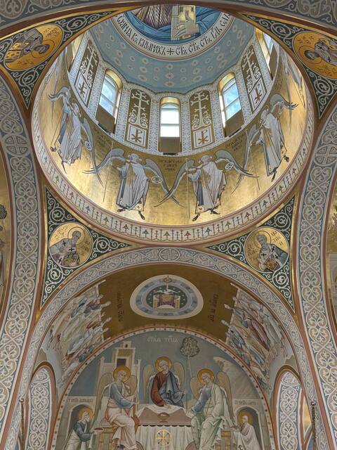 Украшает храм уникальная роспись, выполненная в мягкой пастельной палитре с акцентами классического сусального золота. Мастерами были выбраны светлые тона и легкие орнаменты. Это позволило подчеркнуть торжественную, но в то же время легкую атмосферу, которая присутствует в храме. Отмечается, что уникальные фрески также появились в нижнем храме, где со временем планируется проводить крестины и небольшие службы.